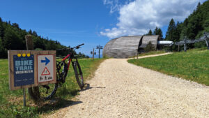 Der Start in den Bike Trail liegt unterhalb der Bergstation der Gondelbahn. Die Piste ist in eine „blaue“ und „schwarze“ Strecke eingeteilt: